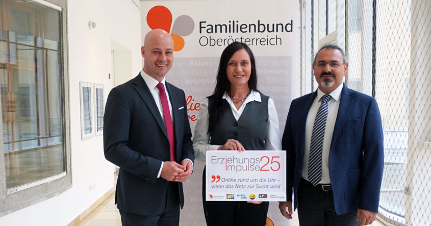 Mag. Martin Hajart, Landesobmann OÖ Familienbund, Mag. Ana Aigner, Landesgeschäftsführerin OÖ Familienbund und Primar Priv.-Doz. Dr. Kurosch Yazdi-Zorn, Leiter der Klinik für Psychiatrie mit Schwerpunkt Suchtmedizin am Kepler Universitätsklinikum Linz.