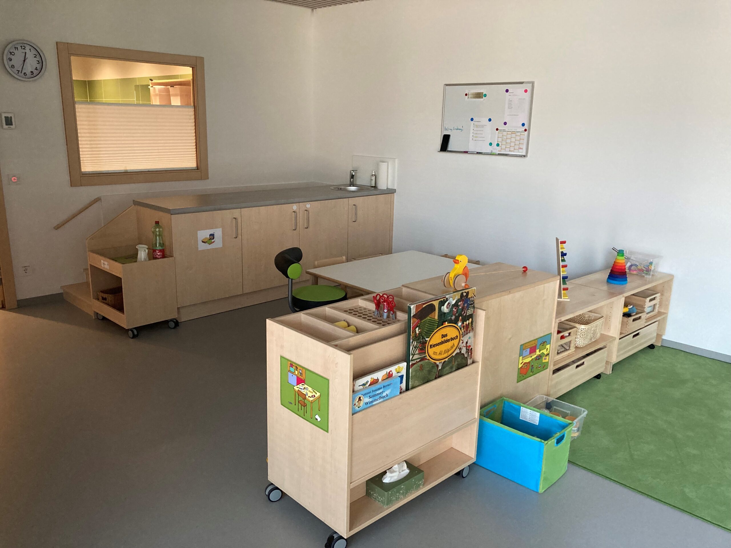 Die Krabbelstube verfügt über einen hellen und freundlich gestalteten Gruppenraum und einen großzügigen Outdoor-Bereich. Wird der Bedarf der Kinderbetreuung mehr, so gibt es auch neben den Räumlichkeiten der Krabbelstube, in denen eine Tagestätte betrieben werden kann.